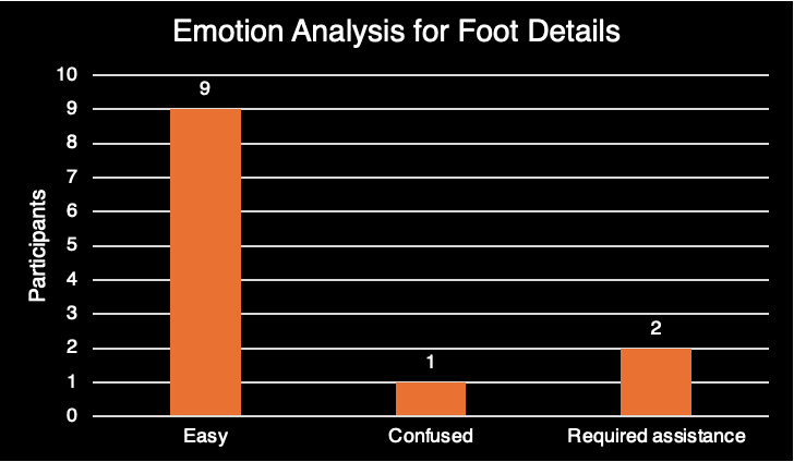· A few users would appreciate more information on the questionnaire of Foot Details through images.