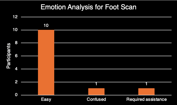 · The participants could perform all the core tasks like scanning their feet, review measurements, filling out the foot details questionnaire, and exploring matching footwear options in the integrated app.
