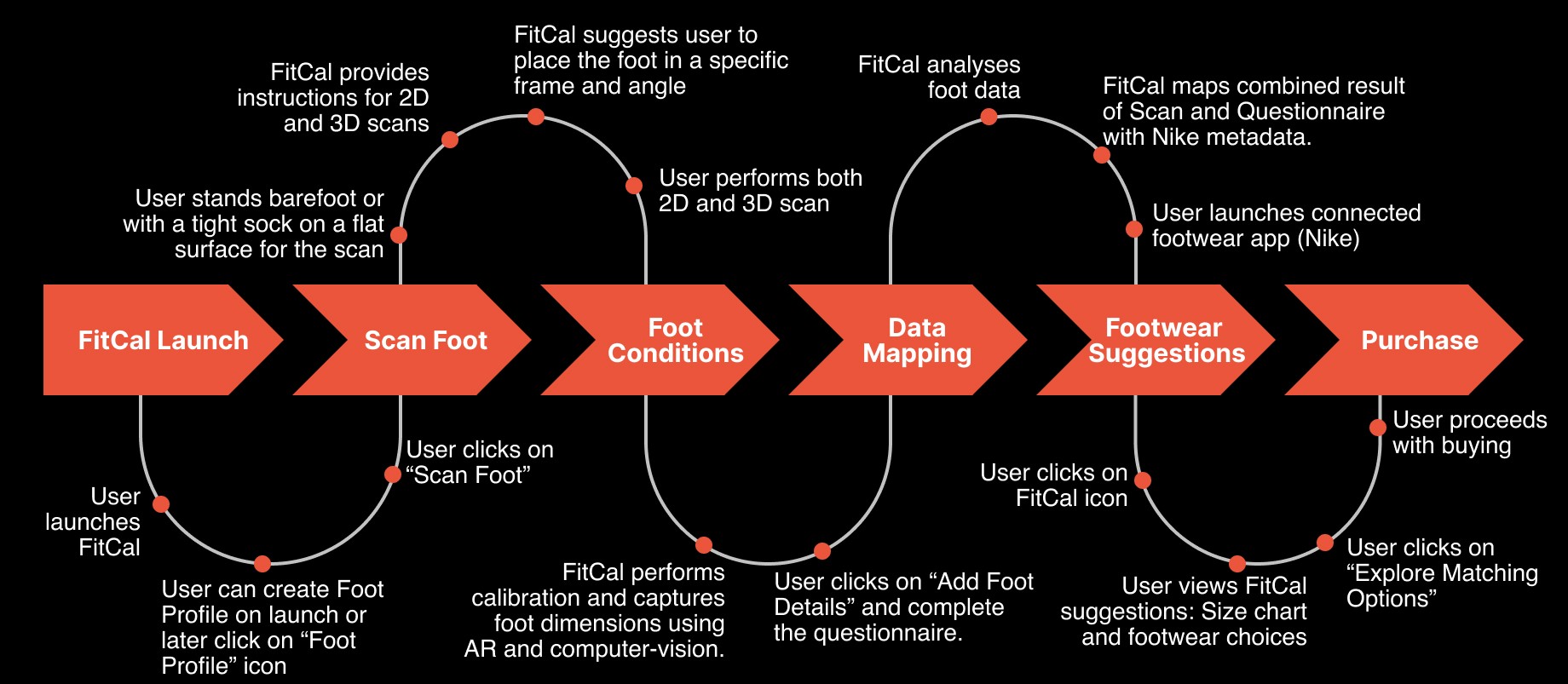 FitCal is an Augmented Reality Smart plugin, designed to enhance online footwear shopping experience. It can be integrated to existing footwear brand applications. It incorporates accurate 3D foot scanning with AR, inclusive fit analysis and AI-driven personalized recommendations based on brands.